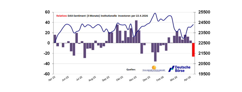 Einige Tage nach Beginn des Iran-Kriegs zeichnete sich erstmals ein grobes Kursmuster ab, das seitdem immer wieder zu beobachten ist: Spätestens einen Tag nach unserer Sentiment-Erhebung geht es mit dem DAX ins Wochenende hinein mehr oder weniger deutlich nach unten. Und zu Beginn der folgenden Woche ergibt sich eine…