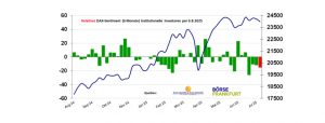Mit einem Gewinn von 2,5 Prozent gegenüber den Tiefständen hat sich der DAX von seiner Schwächephase während der Vorwoche eindrucksvoll erholt. Allerdings hat sich die Laune der Akteure nicht gleichermaßen gebessert. Denn sowohl institutionelle als auch private Anleger sind schlechter gestimmt als am vergangenen Mittwoch. Viele der in der Mehrheit befindlichen Pessimisten haben sich also nicht zu Rückkäufen durchringen können, obwohl die Kursgewinne nicht unbeträchtlich waren. Warum der DAX dennoch eine veritable Erholung von seinen Tiefständen der Vorwoche hinlegen konnte, erklärt … lesen Sie HIER weiter oder verfolgen Sie HIER das YouTube-Video, das ich heute für die Börse Frankfurt erstellt habe.