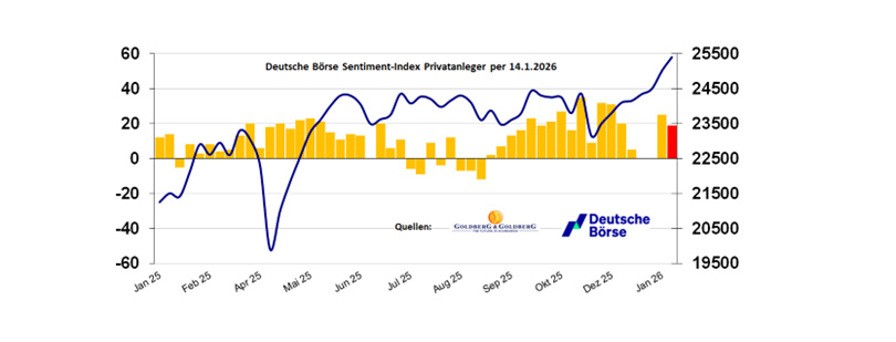 Bei der heutigen Stimmungserhebung der Börse Frankfurt konnte immerhin ein neuer Rekord verzeichnet werden. Und das, obwohl die heutigen Daten zum US-Wachstum und zum dortigen Arbeitsmarkt (Arbeitsmarktagentur ADP) zum Erhebungszeitpunkt noch nicht einmal bekannt waren. Meinen Kommentar dazu können Sie HIER nachlesen.